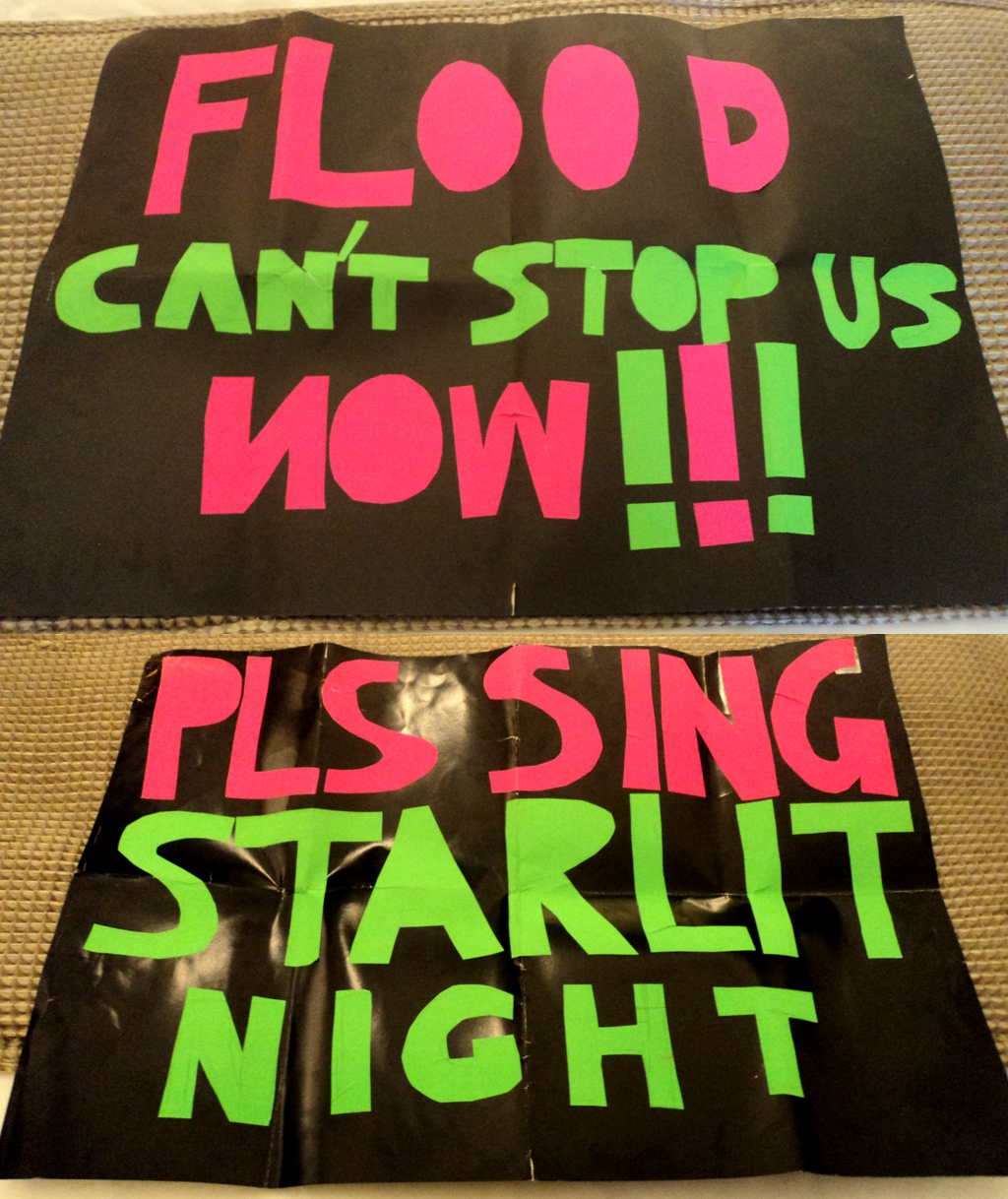 Standing for the entirety of the concert was so worth it. Imagine us standing "front-side" row with our glow in the dark banner(s), it would surely catch the eyes of the boys, and oh boy did they frequently look our way (more on that later)